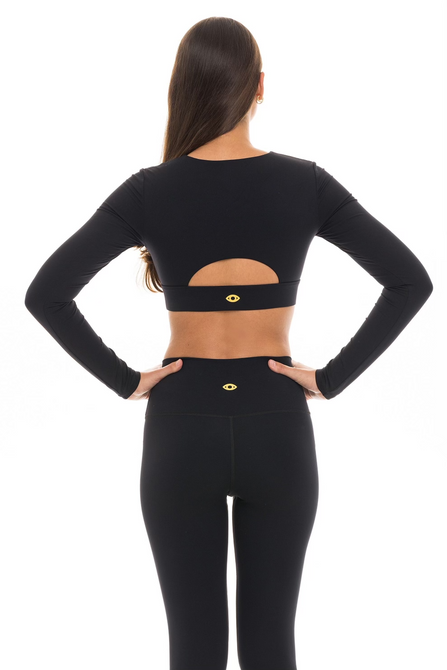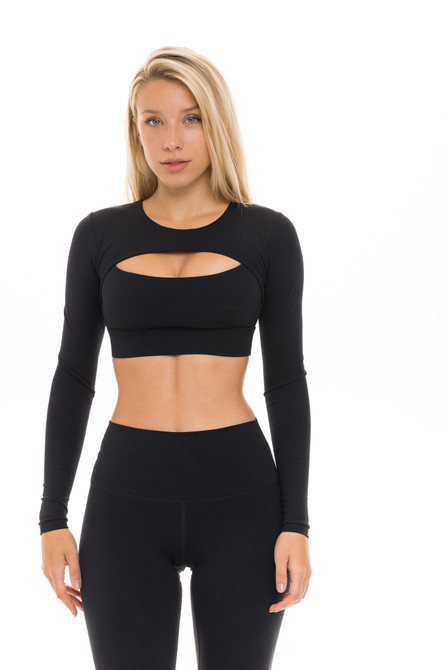 Long sleeve flattering sports bra that creates a lift with cutouts for ventilation. Great for a medium to high impact workout.