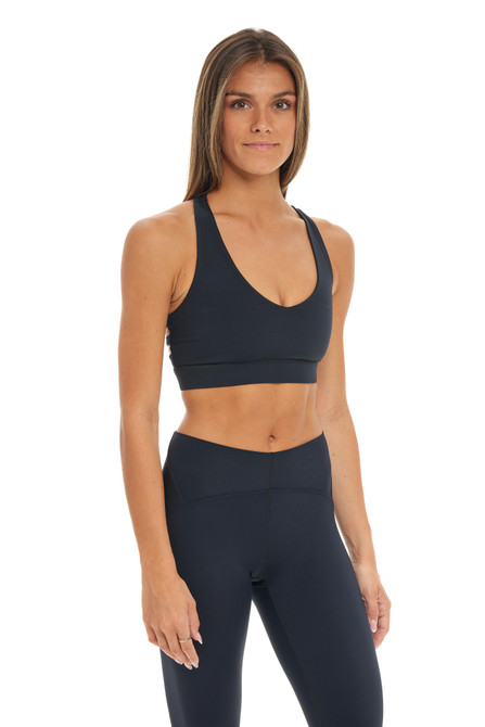 Performance bra with strap detailing that's comfortable, perfect for yoga or pilates.